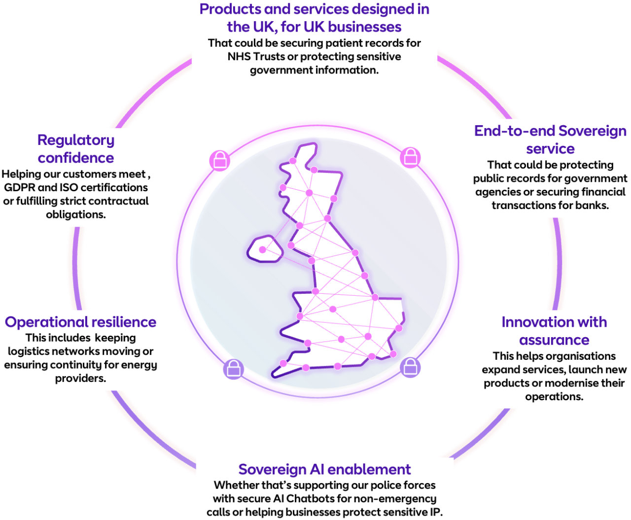 We enable innovation with control, supporting AI adoption under UK data governance, ethical frameworks, and full sovereignty.